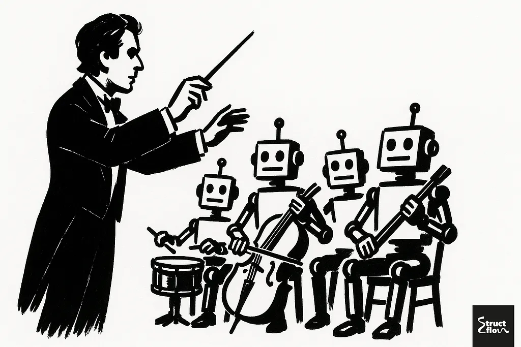 Storm2Flow is a small, concrete instance of the thesis. An AI-driven structuring engine that turns messy input (text, voice notes, workshop output, photos of whiteboards) into the artifacts teams actually use: flow diagrams, BPMN models, sequence diagrams, structured process flows.